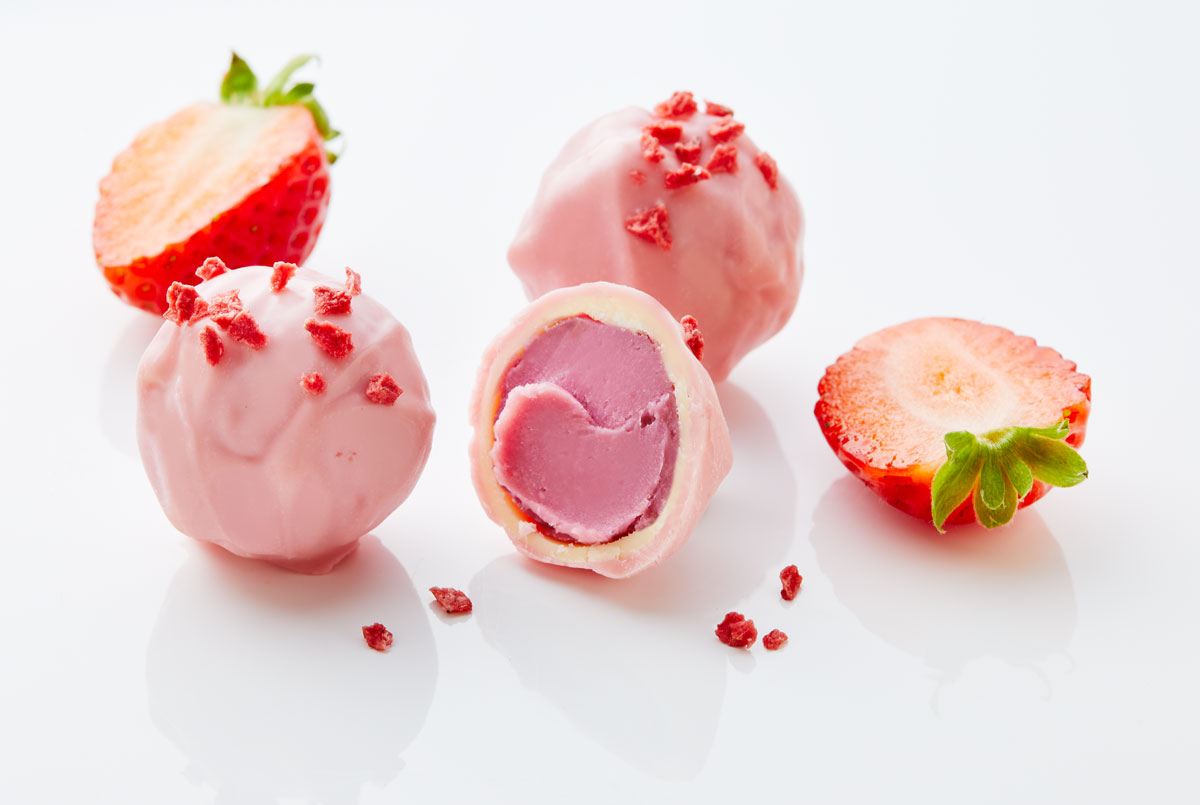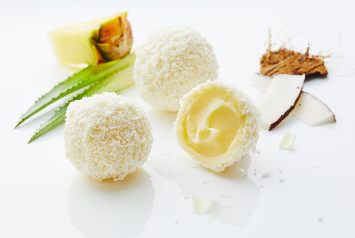 | Praline | Erdbeer-Joghurt-Trüffel, Himbeer-Pralinen, Kokos-Ananas-Trüffel, Limette-Ingwer-Praline, Mango-Joghurt-Herzen, Marzipankartoffeln |